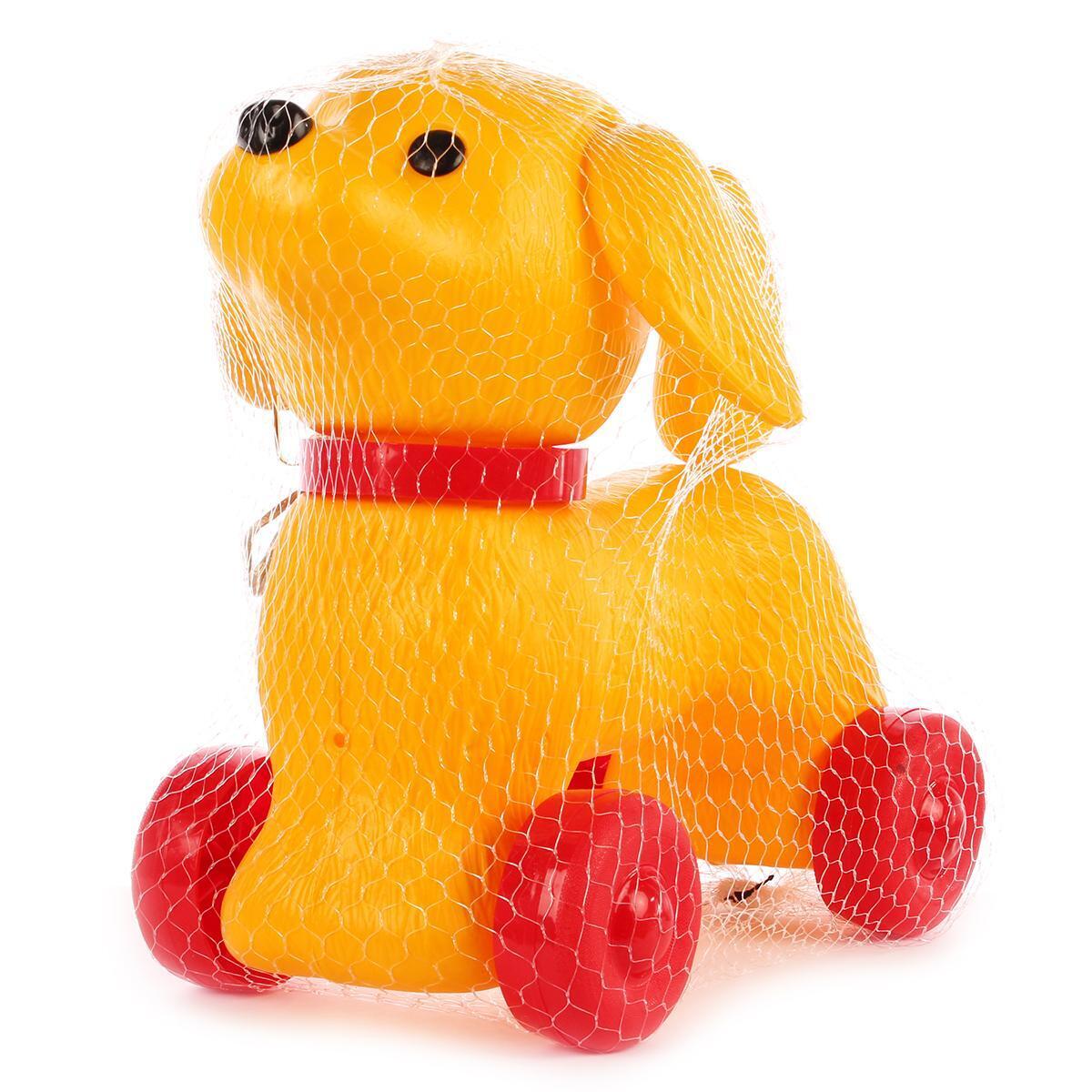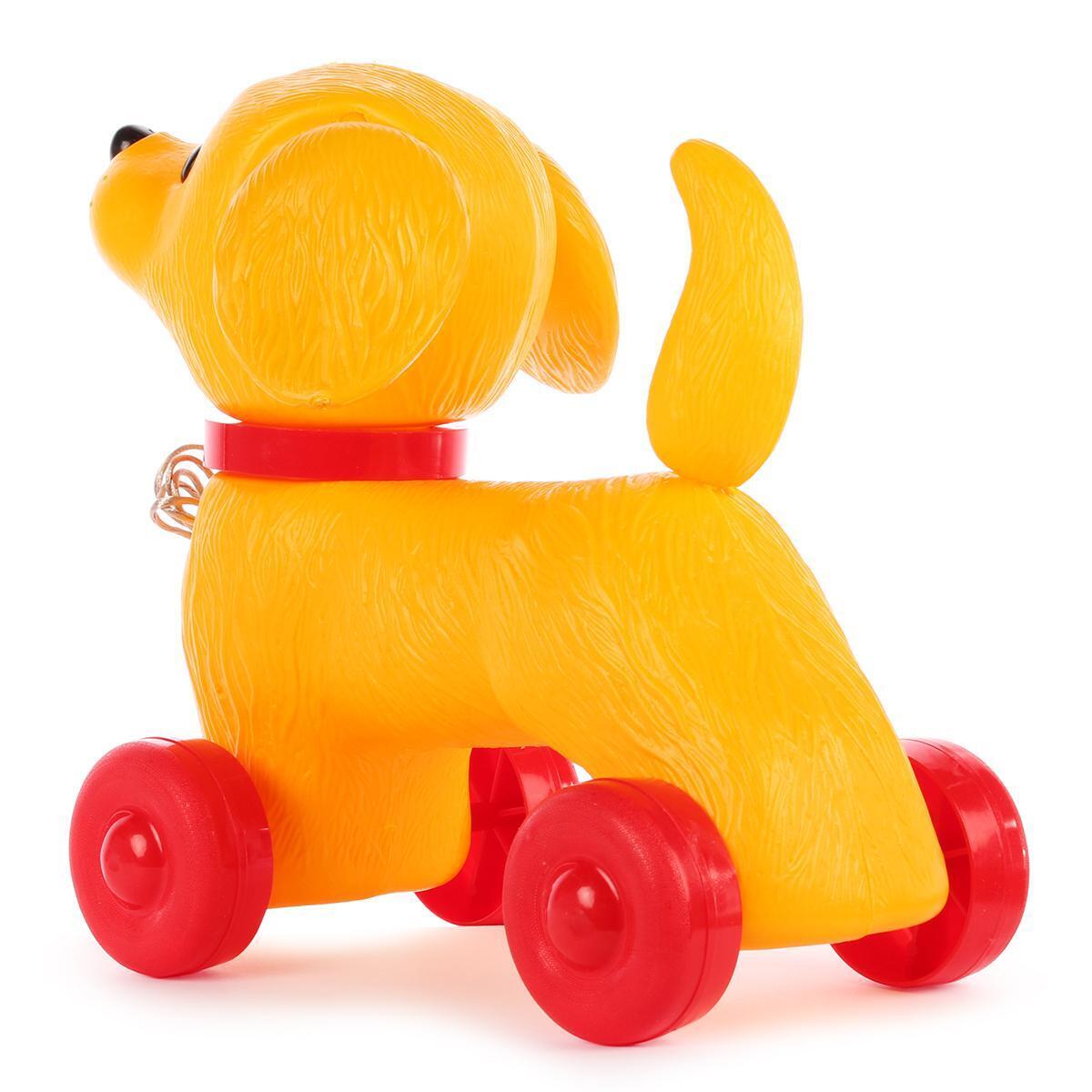 Каталка детская «Собачка» для первых шагов, пластик, желтый с красным, 26x15x27см