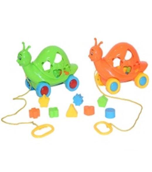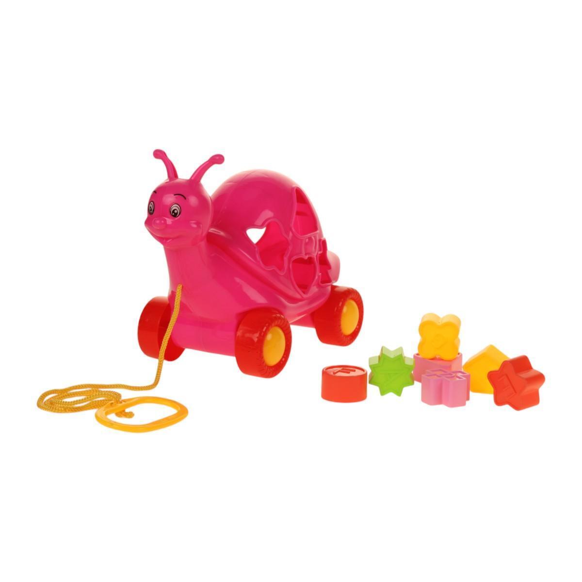 Каталка-сортер 'Улитка' на веревке, пластик, розовая/желтая, 22х11х16см