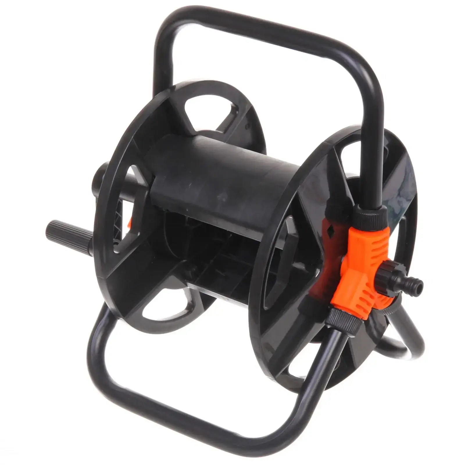 Катушка легко устанавливается и не требует использования инструментов при сборке. Специальная конструкция соединения катушки со шлангом под углом предотвращает перегибы при сматывании, что значительно упрощает процесс использования. Она подходит как для опытных садоводов, так и для тех, кто только начинает заниматься огородом.
