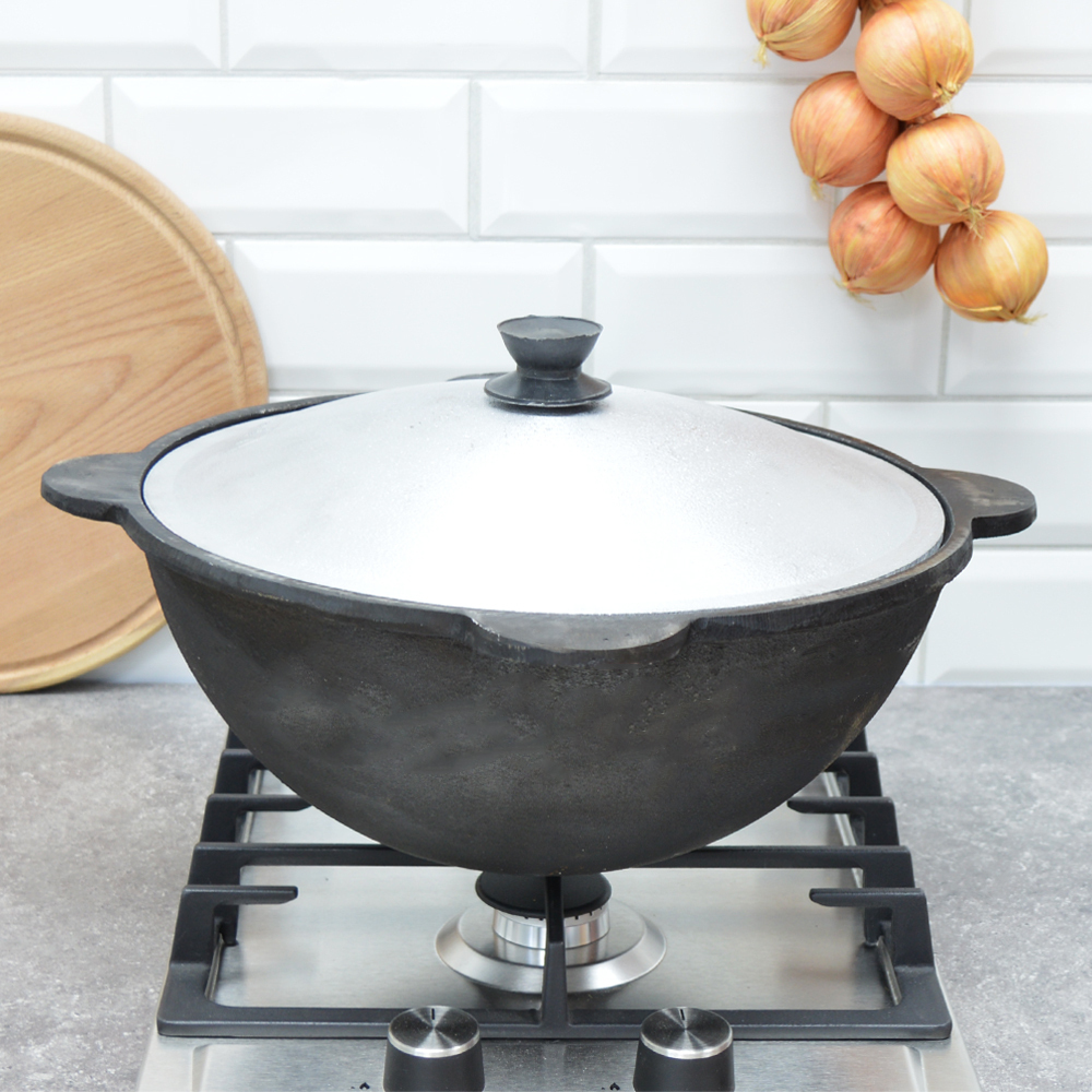 Казан легко использовать как на газовой, так и на электрической плите. Его округлая форма и удобные ручки обеспечивают комфортное использование, а алюминиевая крышка помогает сохранить тепло и влагу внутри. Этот казан подходит для семейных ужинов и больших компаний, позволяя готовить сразу много порций.