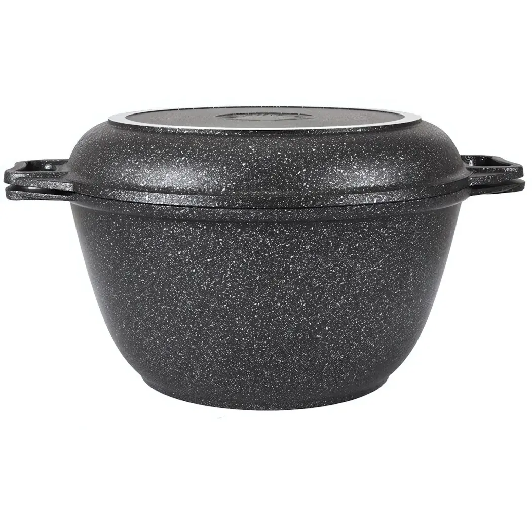 Казан литой алюминиевый 3л с крышкой-сковородой, цвет темный мрамор, KMT34A