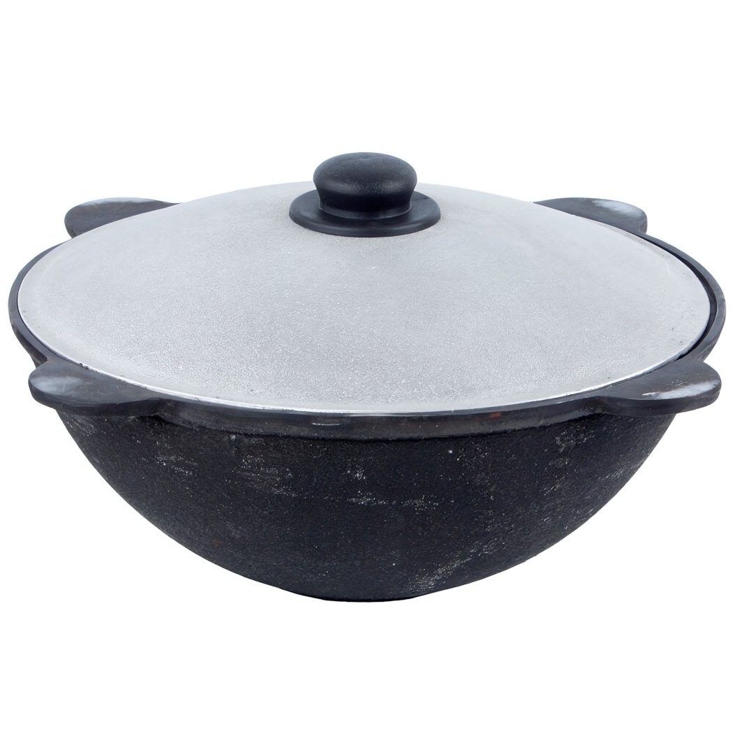 Чугунный казан с продуманной конструкцией создан для тех, кто ценит традиции приготовления и безупречный результат. Плоское дно обеспечивает стабильный нагрев на любой плите, а толстые стенки сохраняют тепло для томления блюд.