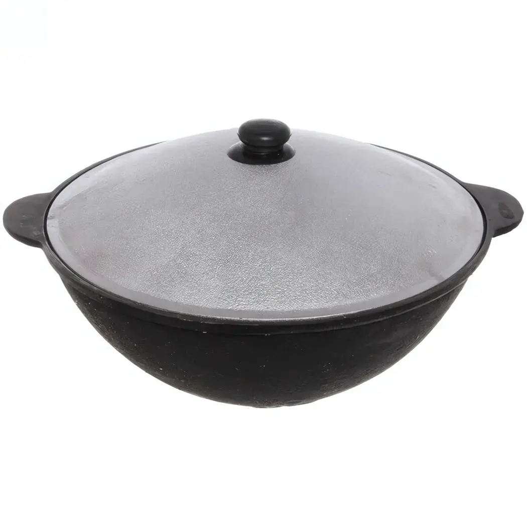 Казан чугунный 8 л с алюминиевой крышкой, круглое дно, для плова и тушения