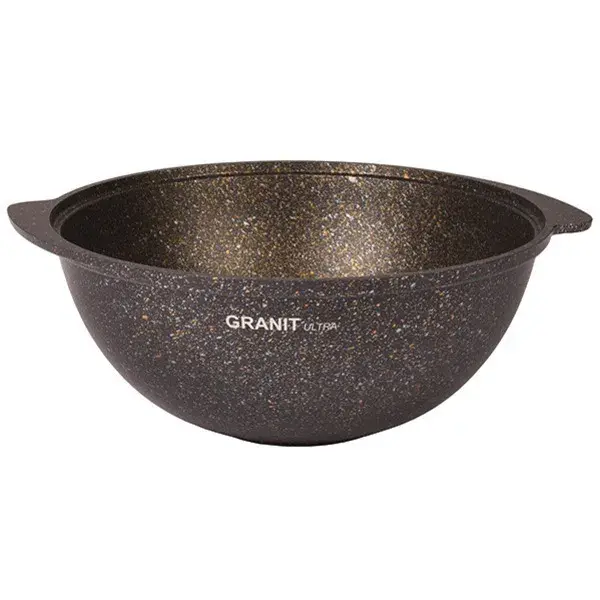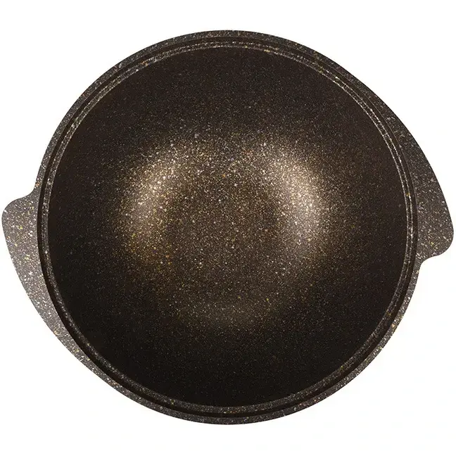 Казан выполнен из литого алюминия, что обеспечивает равномерное распределение тепла и предотвращает пригорание пищи. Его темно-коричневый цвет с золотистыми вкраплениями добавляет элегантности и стиля. Размеры казана идеально подходят для приготовления больших порций, что делает его отличным выбором для семейных обедов и праздников.