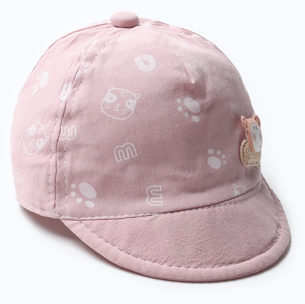 Эта стильная детская кепка станет идеальным аксессуаром для вашего ребенка, обеспечивая комфорт и защиту от солнца. Выполненная из 100% хлопка, кепка легкая и дышащая, что делает ее идеальной для летних прогулок. Розовый цвет и милые рисунки животных на поверхности кепки добавляют игривости и радости в повседневный образ вашего малыша.