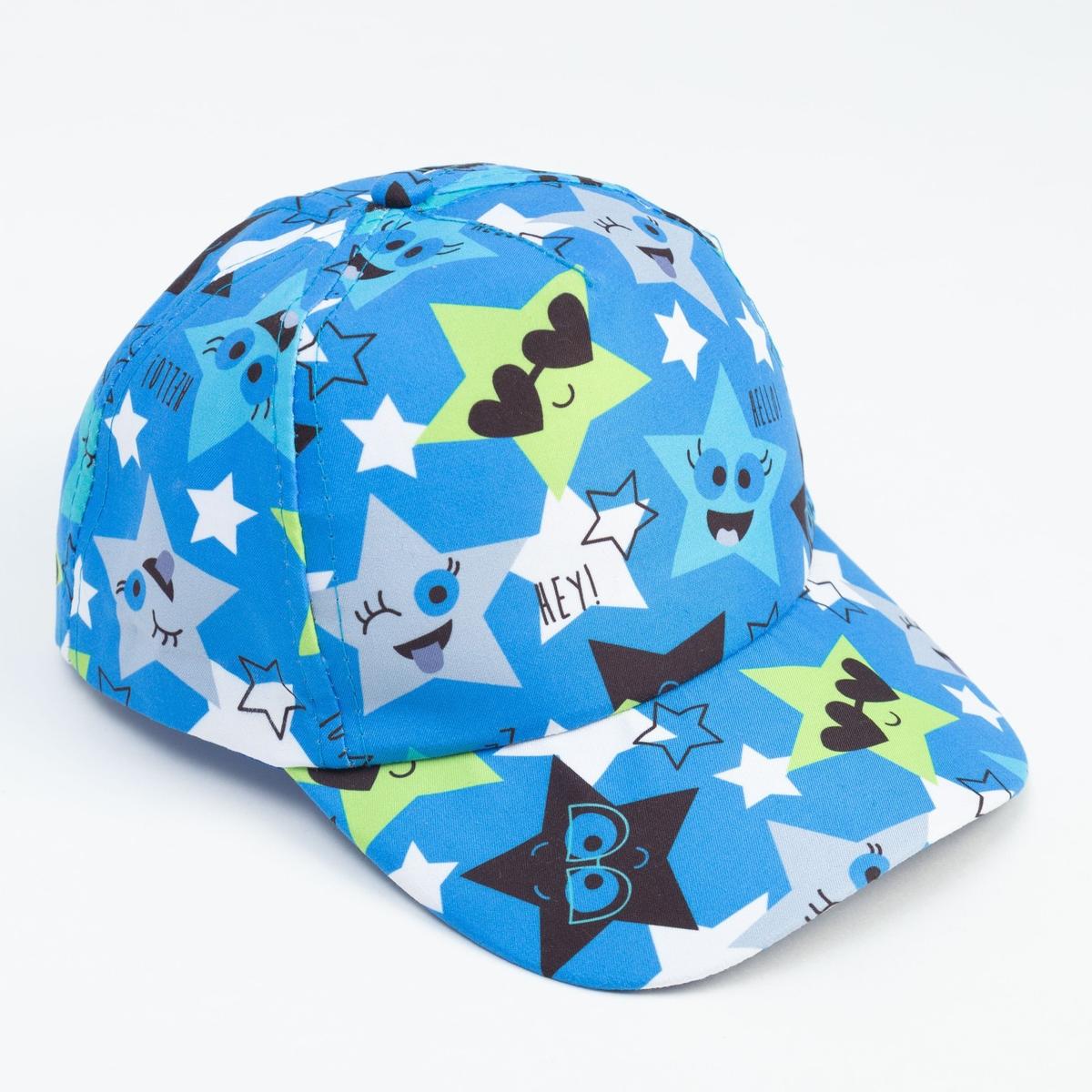 Кепка детская голубая "Звёзды" MINAKU, р.52, хлопок, с ярким принтом и надписями
