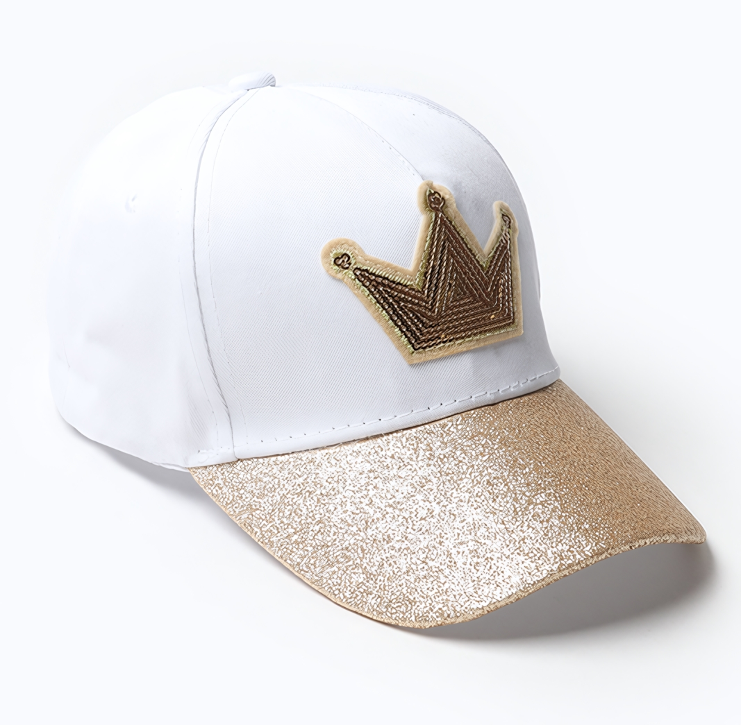 Белоснежная кепка с золотой короной станет любимым аксессуаром вашей дочки. Идеальный баланс практичности и эстетики: хлопковый материал обеспечивает воздухообмен, а элегантная вышивка превращает обычный головной убор в элемент сказочного образа.