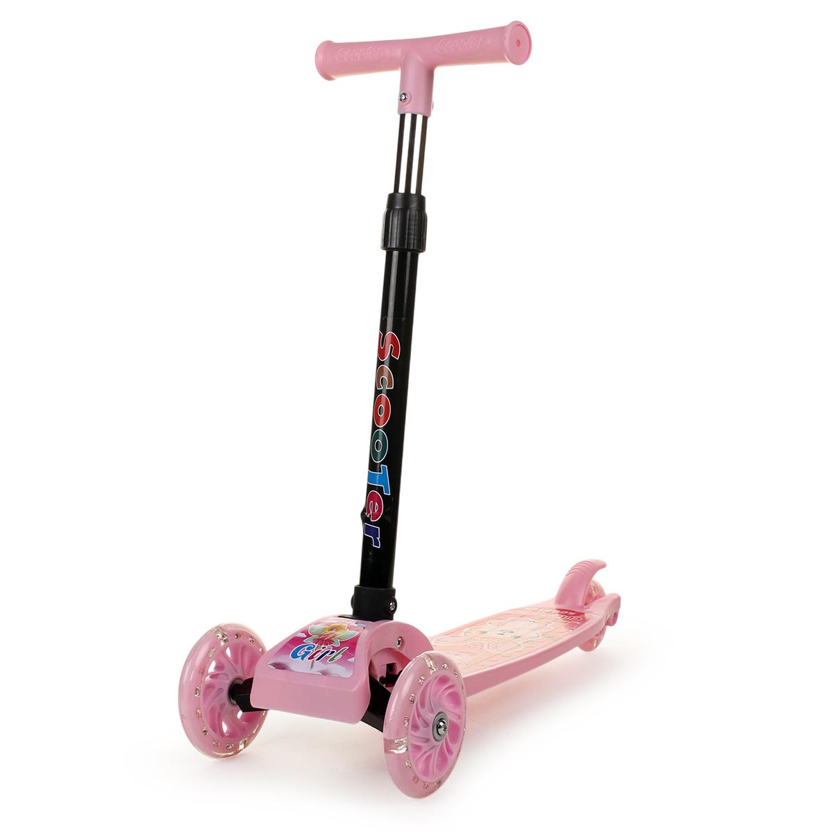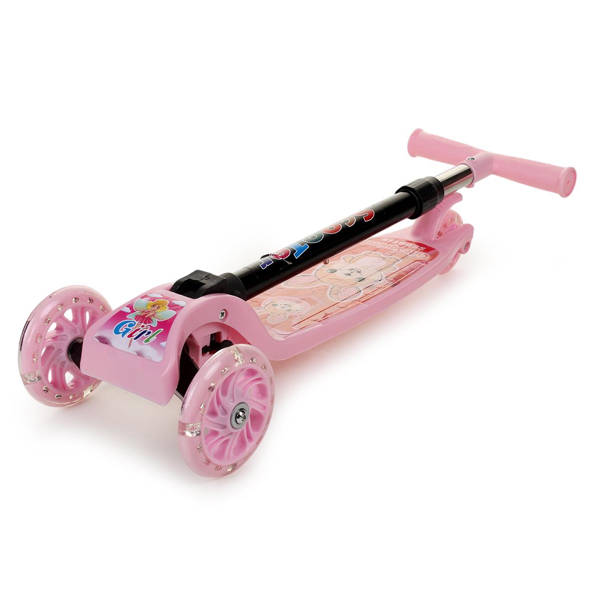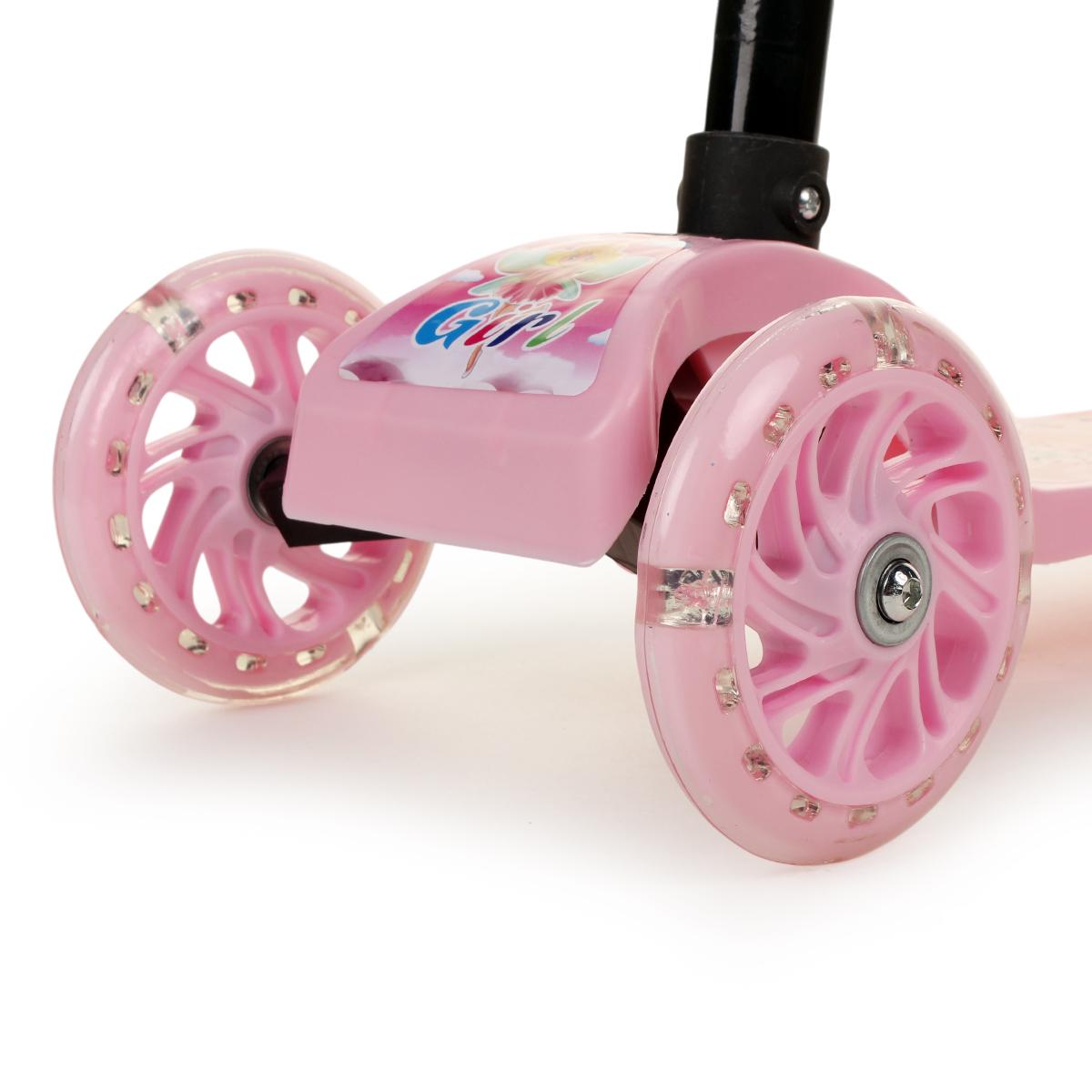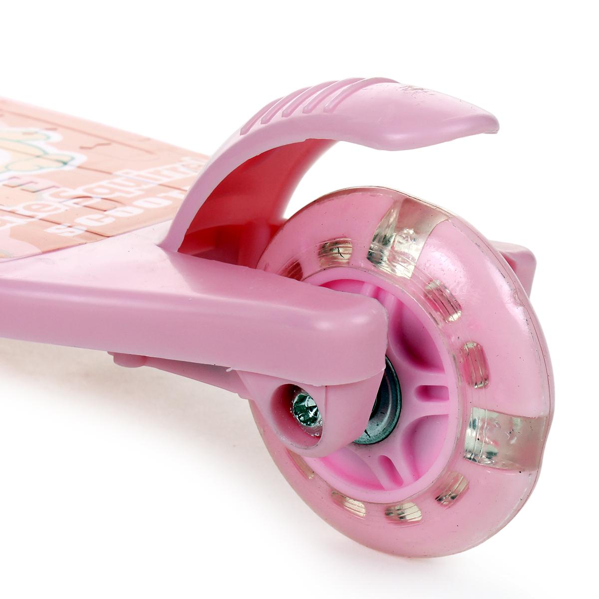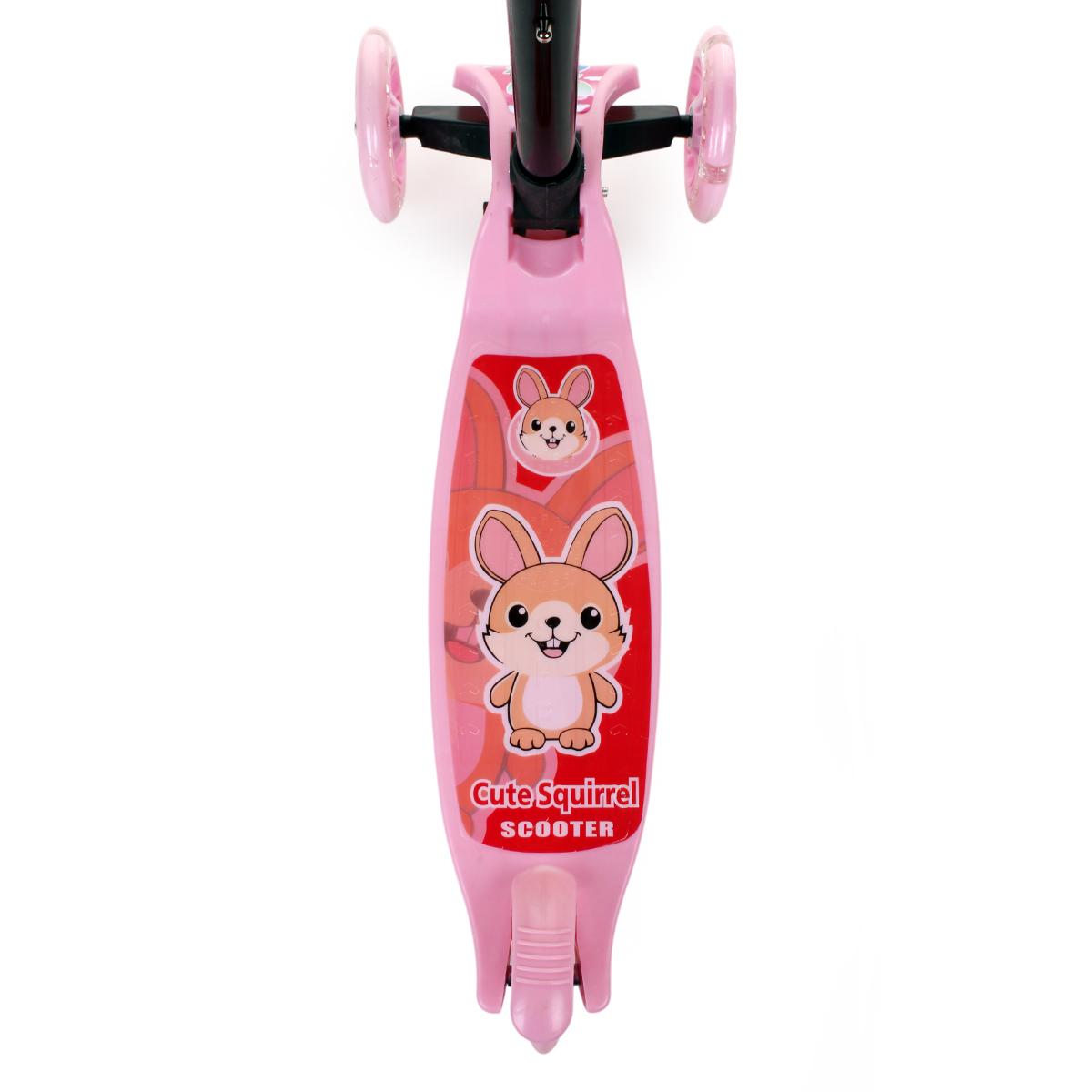 Самокат детский трехколесный "Cute Squirrel", розовый, со светящимися колесами, регулируемая высота, макс. нагрузка 30кг