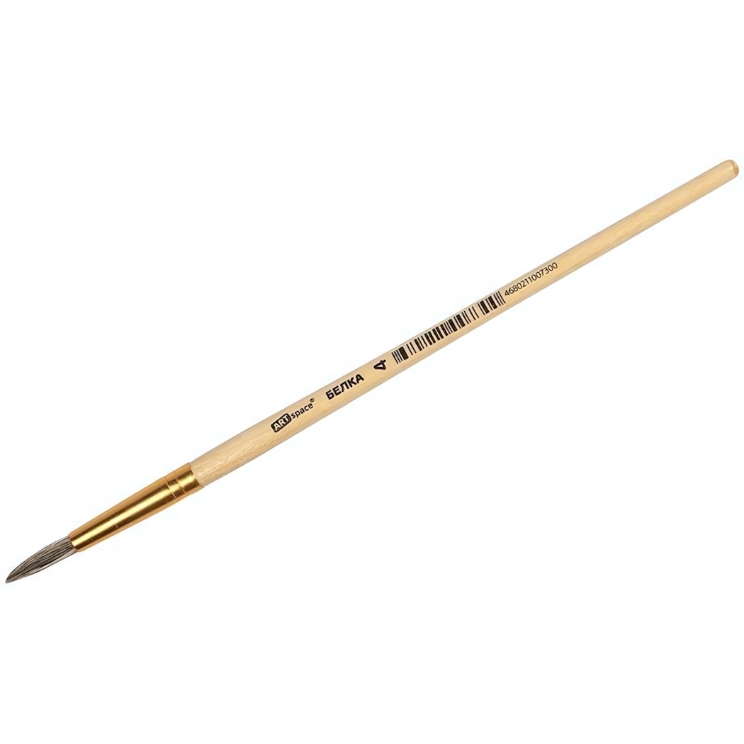 Кисть художественная круглая №4 из беличьего волоса, короткая деревянная ручка, "Спейс"
