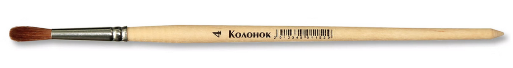 Кисть художественная №4 из натурального колонка, мягкий ворс для акварели и гуаши, деревянная ручка