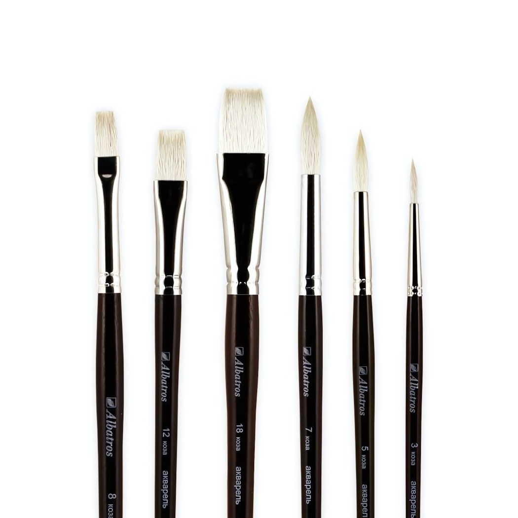 Идеальный инструмент для тонкой работы акварелью, гуашью и темперой. Натуральный козий волос обеспечивает мягкое нанесение и превосходный контроль за краской.