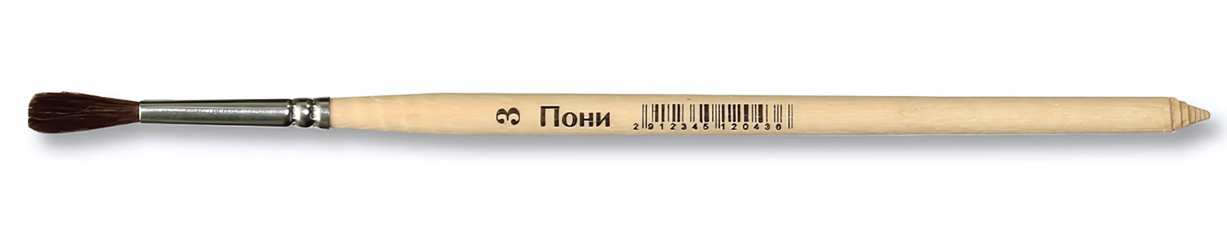 Кисть школьная из волоса пони №3, деревянная ручка, для акварели и гуаши