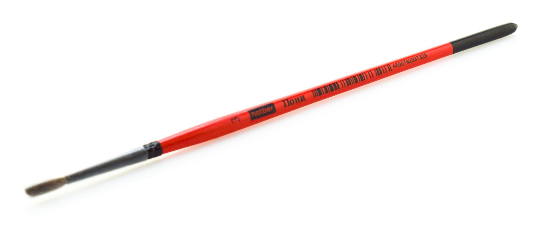 Кисть художественная круглая №3, волос пони, деревянная ручка