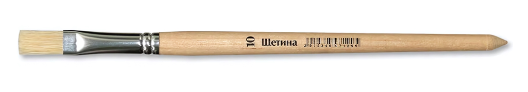 Кисть плоская №10 для акварели и гуаши, натуральная щетина, деревянная ручка, Артком