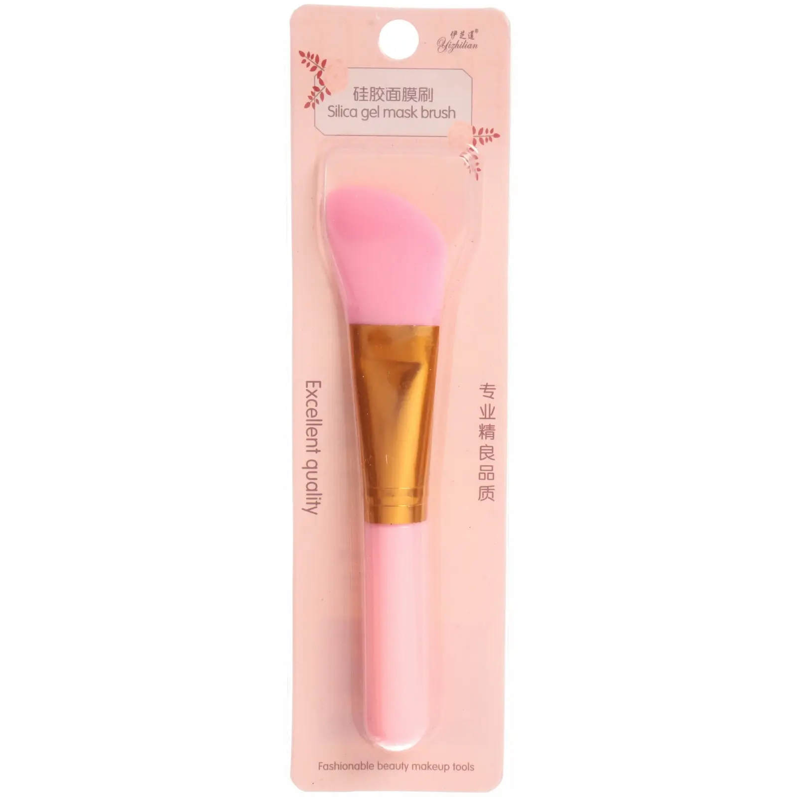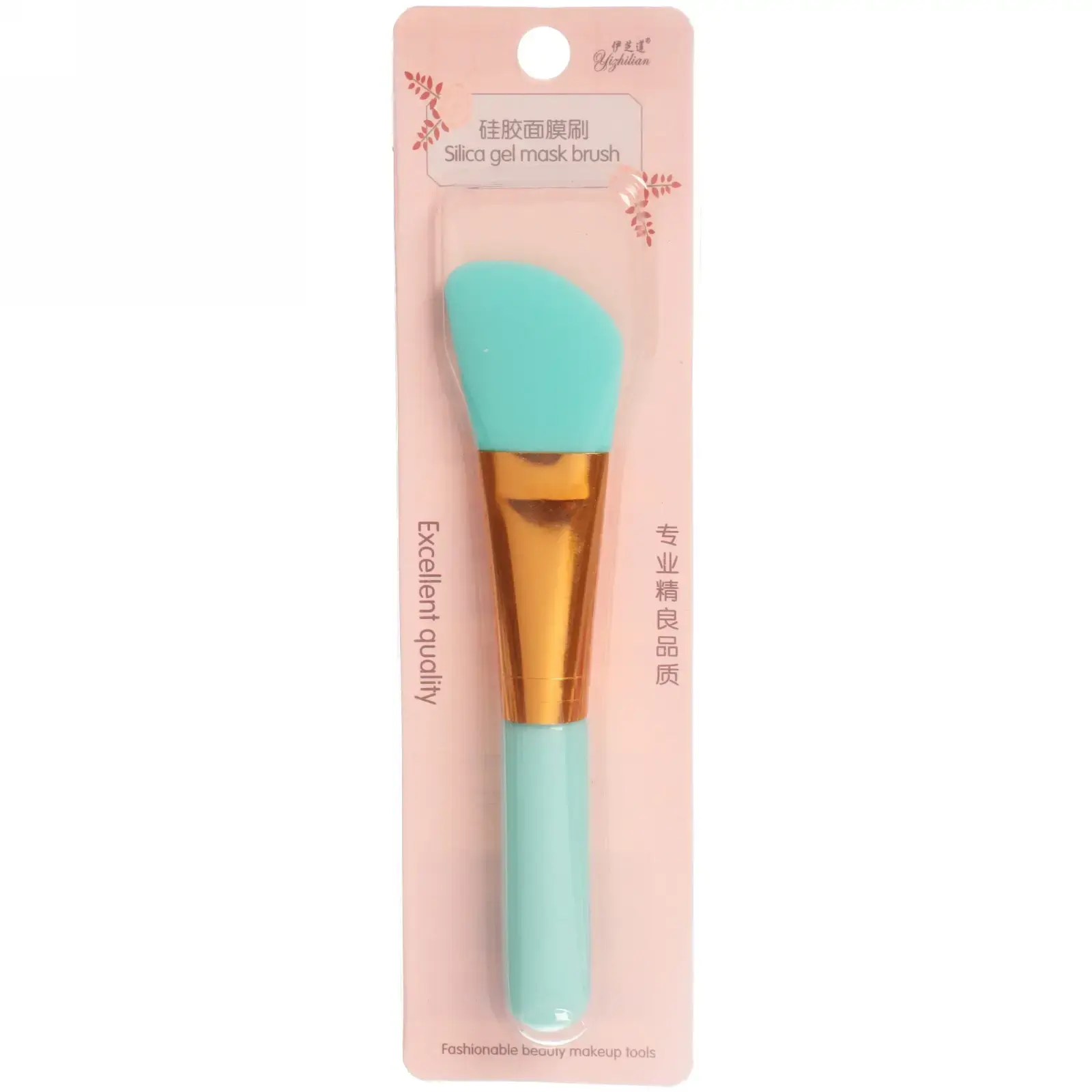 Размер кисти составляет 14 см в длину и 3 см в ширину, что делает её идеальной для нанесения масок на лицо. Изготовленная из качественного пластика и силикона, она сочетает в себе прочность и гибкость. Золотистая деталь между ручкой и головкой придаёт кисти стильный вид и делает её ещё более привлекательной.