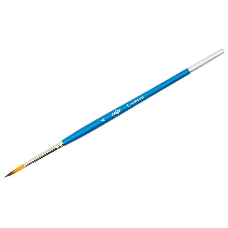 Кисть синтетическая круглая №4, длина 20см, для акварели и гуаши