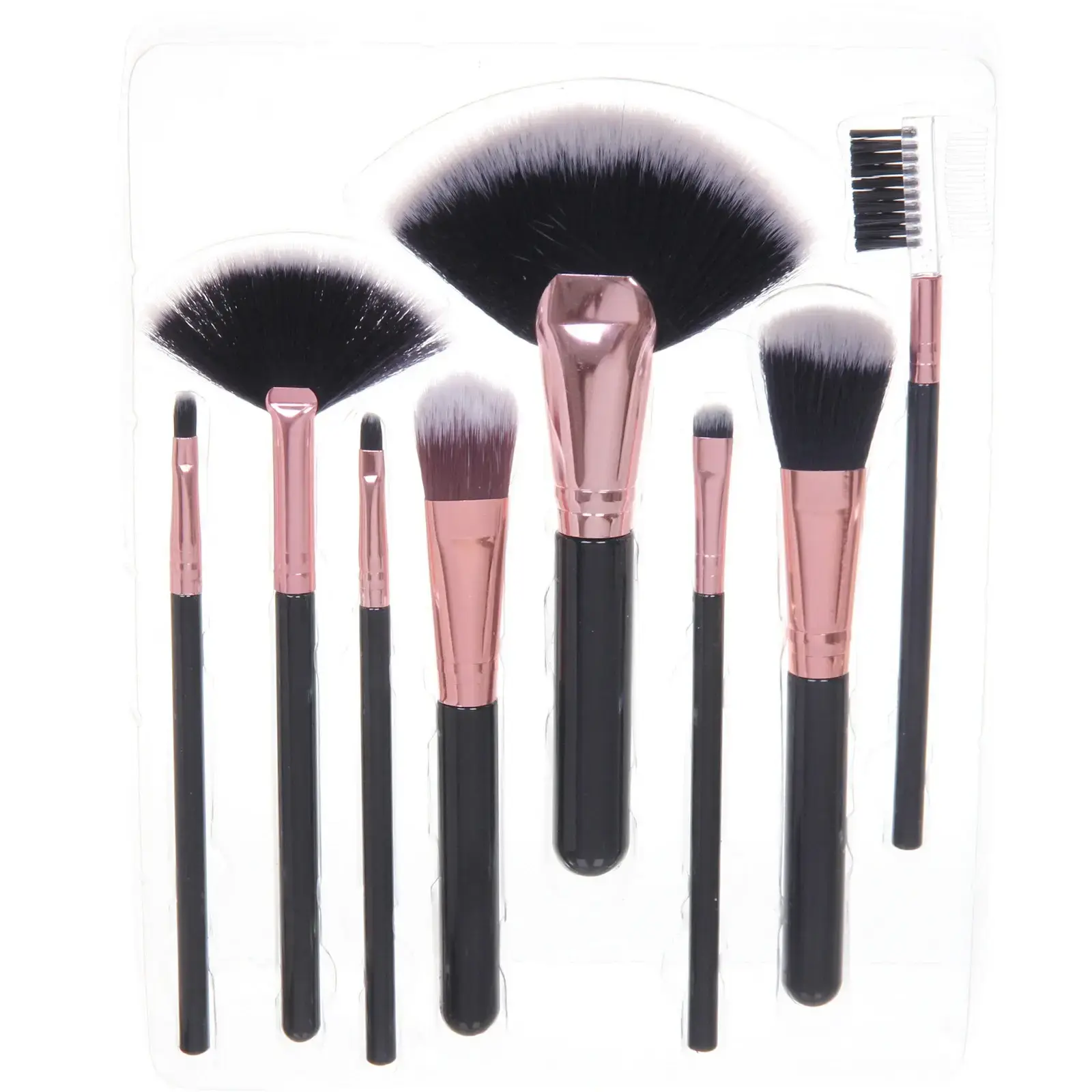 Почему стоит выбрать именно этот набор? Во-первых, кисти имеют мягкую и густую щетину, что обеспечивает равномерное нанесение косметики. Во-вторых, черные ручки с розовыми металлическими деталями не только стильные, но и удобные в использовании. Каждая кисть имеет стандартную длину, что делает их удобными для работы. Кроме того, прозрачная упаковка позволяет видеть все кисти, что удобно для выбора нужного инструмента.