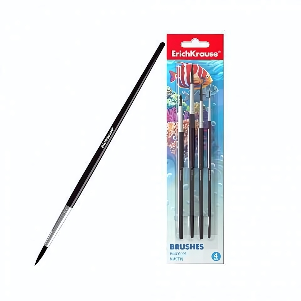 Кисти для рисования Erich Krause, набор 4шт, пони, круглые №2-5, для акварели и гуаши