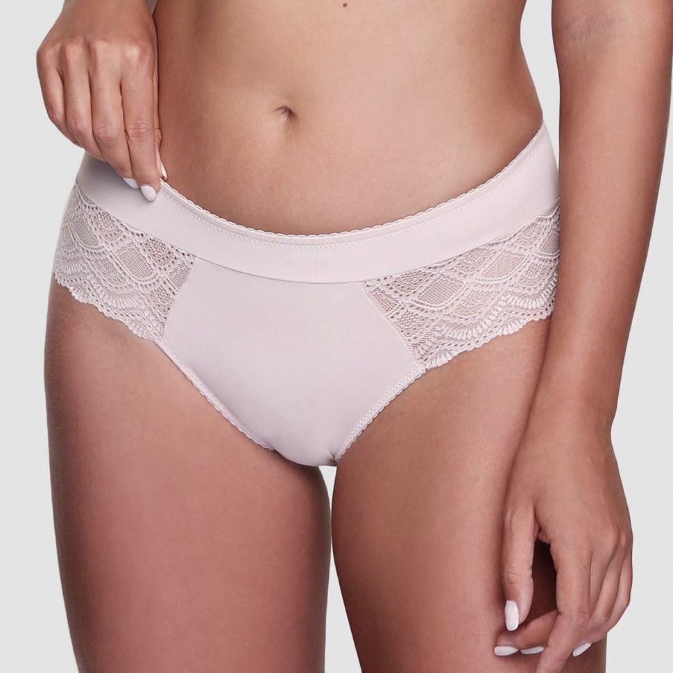 Трусики имеют бесшовную переднюю деталь, что делает их практически незаметными под одеждой. Внутренняя часть ластовицы выполнена из хлопка, что обеспечивает дополнительный комфорт и гигиеничность. Эластичные срезы талии и ножек обработаны мягкой отделочной лентой с декоративным краем-пикот, что добавляет изделию изысканности.