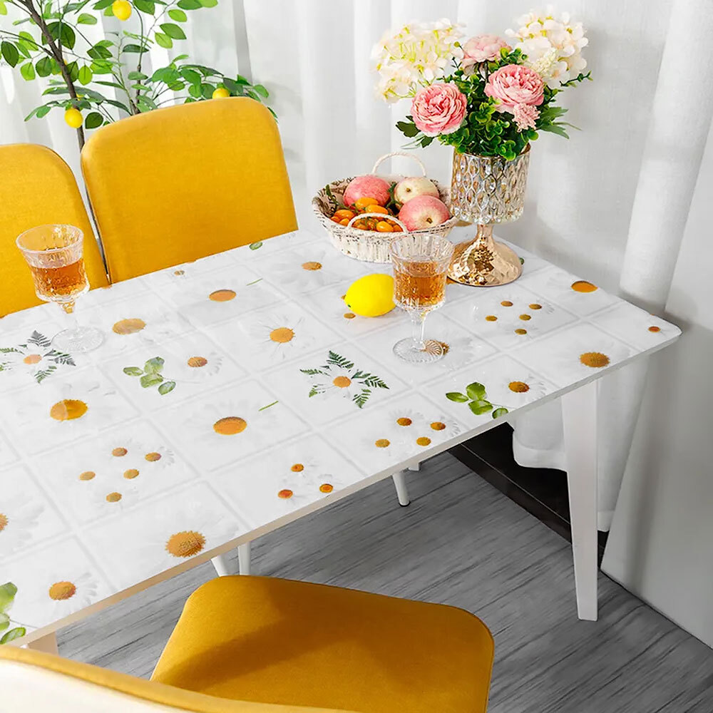 Клеенка ПВХ с очаровательным принтом ромашек станет идеальным решением для вашей кухни. Материал сочетает в себе практичность и эстетику — защищает поверхности от загрязнений, легко моется и служит долгие годы.