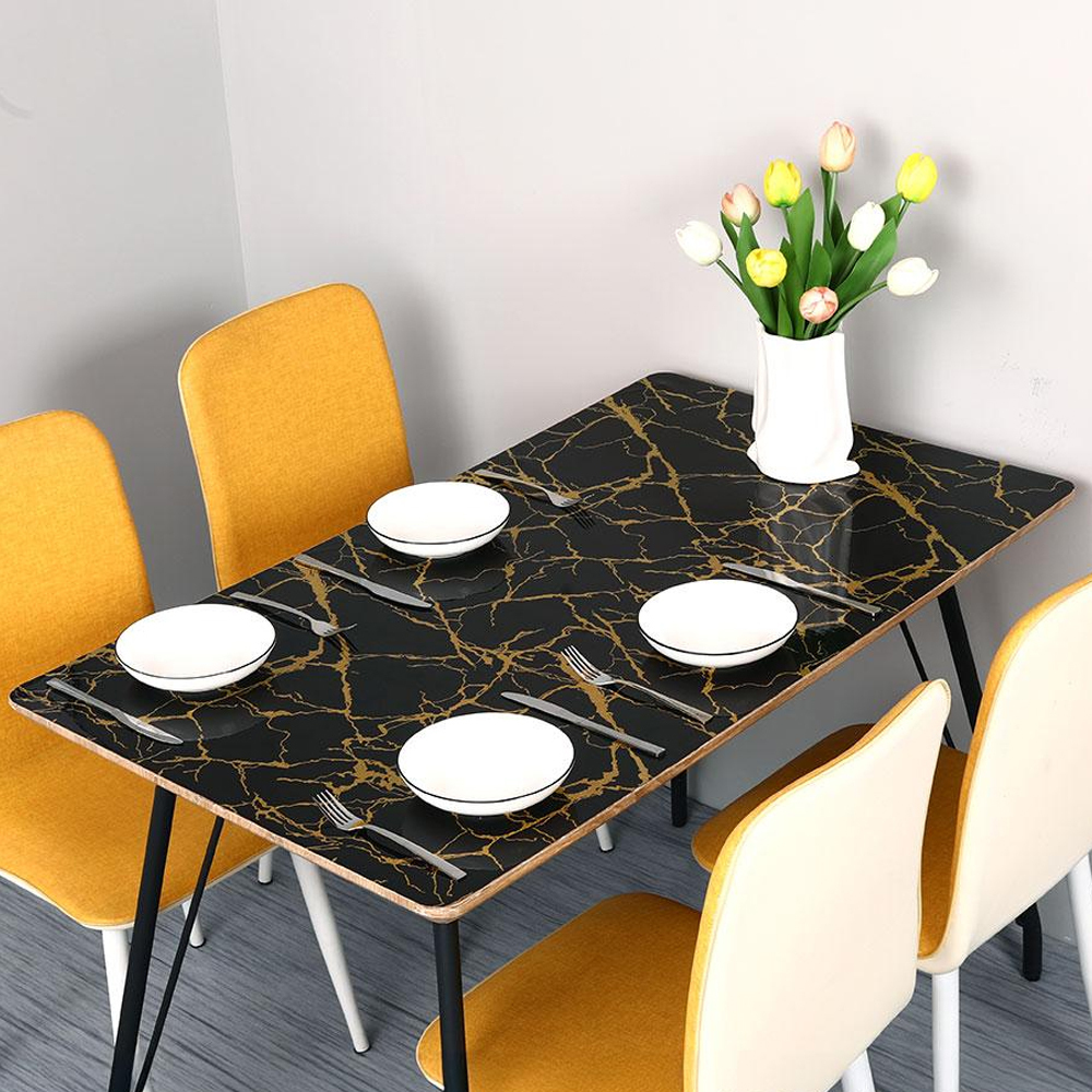 Декоративная клеенка с золотым узором сочетает практичность и элегантность. Идеально подходит для защиты столешниц от царапин, влаги и бытовых загрязнений, сохраняя первоначальный вид мебели.