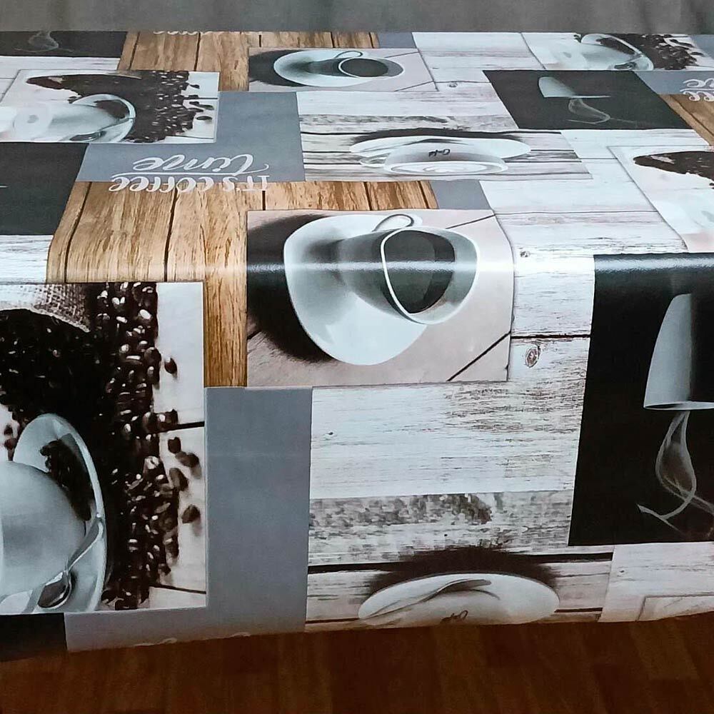 Эта клеёнка сочетает в себе практичность и стиль, создавая уютную атмосферу на вашей кухне. Декор с кофейными чашками, ароматными зёрнами и текстурой дерева добавит столу тёплый и привлекательный вид. Глянцевое покрытие подчёркивает качество изображения и защищает поверхность от влаги и загрязнений.