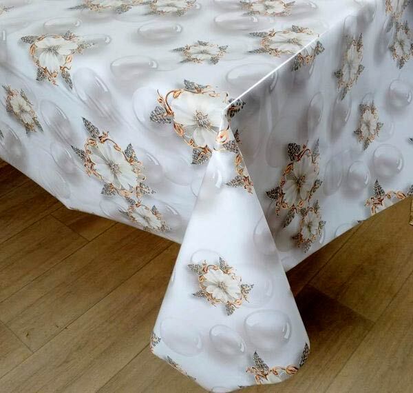 Эта клеенка на тканевой основе сочетает в себе практичность и эстетичный вид, создавая атмосферу уюта и аккуратности на вашей кухне или в столовой. Объемный 3D-узор с цветочными мотивами и изысканными завитками придает поверхности стола декоративную завершенность и легко вписывается в любой интерьер.