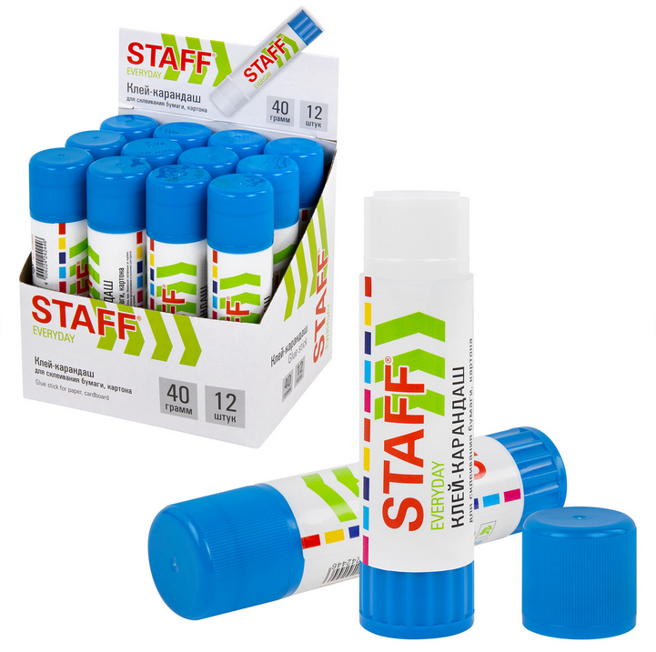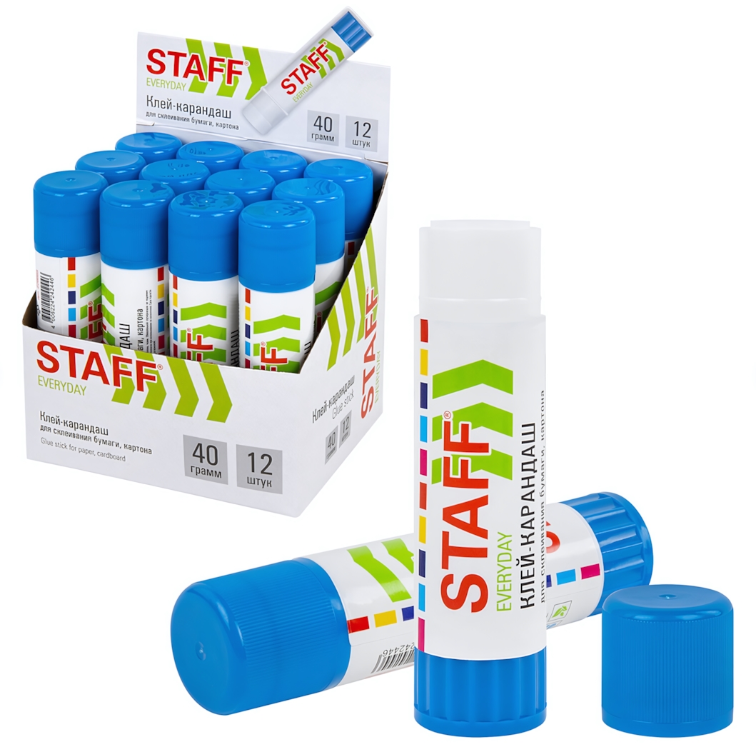 Клей-карандаш «Everyday» STAFF 40г, эргономичный пластиковый корпус, синяя крышка