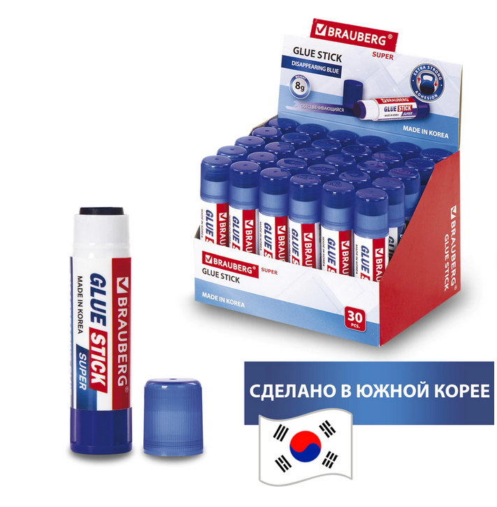 Компактный формат 8 г удобен для пенала, рабочего стола или ящика с канцелярией. Плотный колпачок защищает клеевой стержень от высыхания, а прочный корпус комфортно лежит в руке. Произведен в южной корее, что гарантирует стабильное качество и надежность при ежедневном использовании.