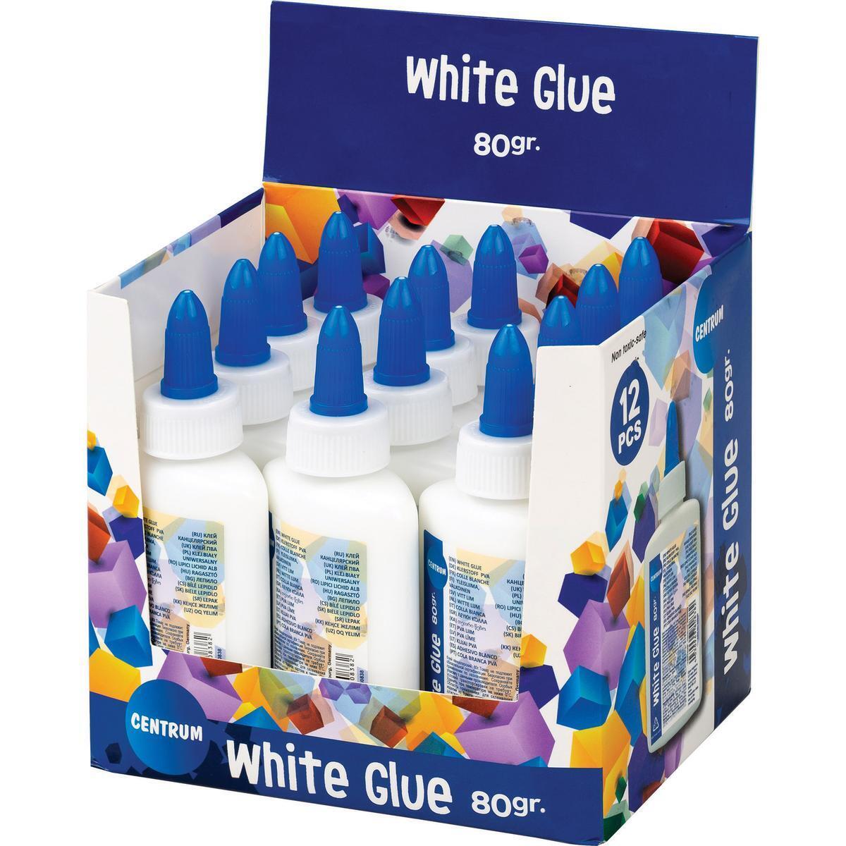 Клей ПВА канцелярский 80 мл, белый, нетоксичный, с удобным дозатором для бумаги и картона
