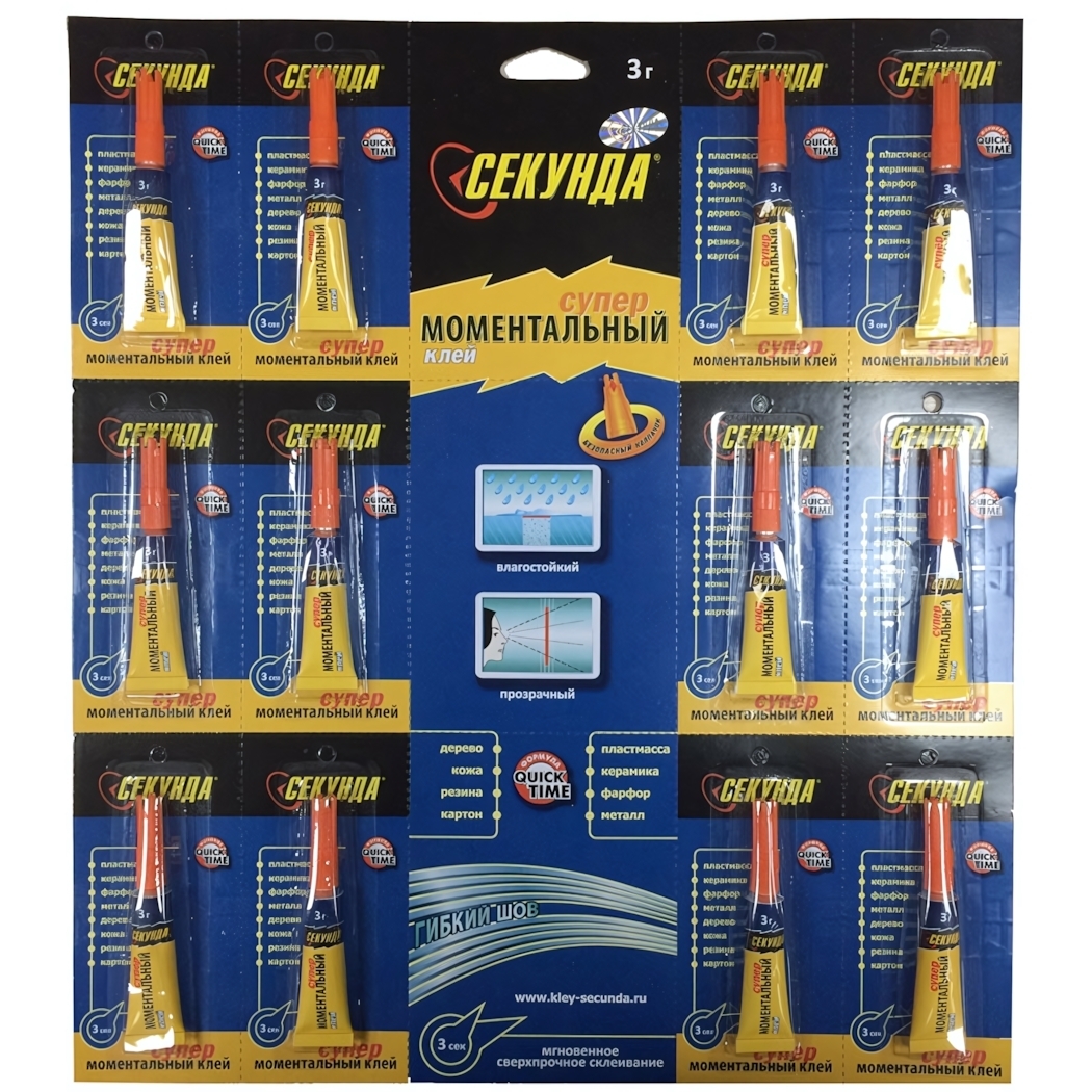 Клей Секунда 3 г – быстрый, надёжный универсальный клей в комплекте 12 тюбиков