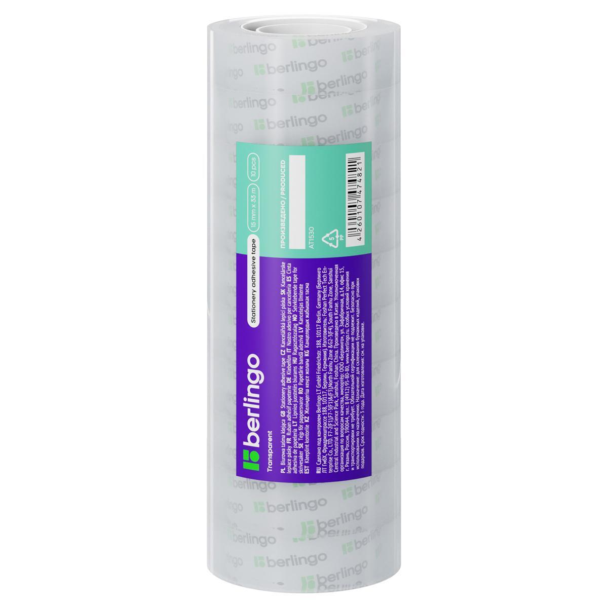 Скотч упаковочный прозрачный Berlingo 15мм×33м, комплект 10 рулонов, повышенная адгезия