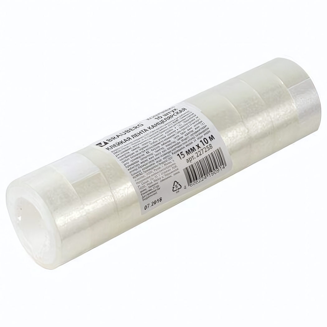 Прозрачный скотч 'BRAUBERG' станет незаменимым помощником в офисе и дома благодаря высокой клеящей способности и оптимальной ширине 15 мм.
