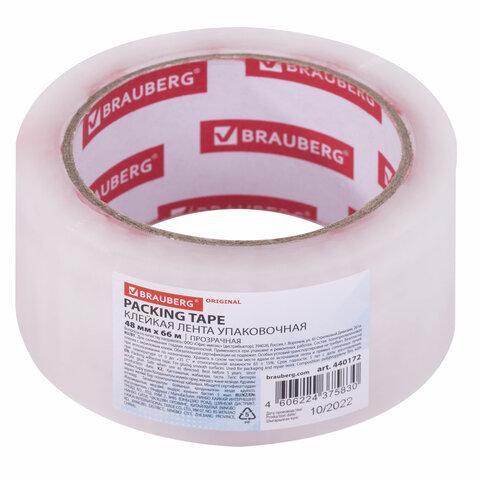 Прозрачная клейкая лента 'BRAUBERG ORIGINAL' обеспечивает профессиональное качество упаковки без лишних усилий. С её помощью вы быстро и аккуратно закрепите коробки весом до 17 кг.