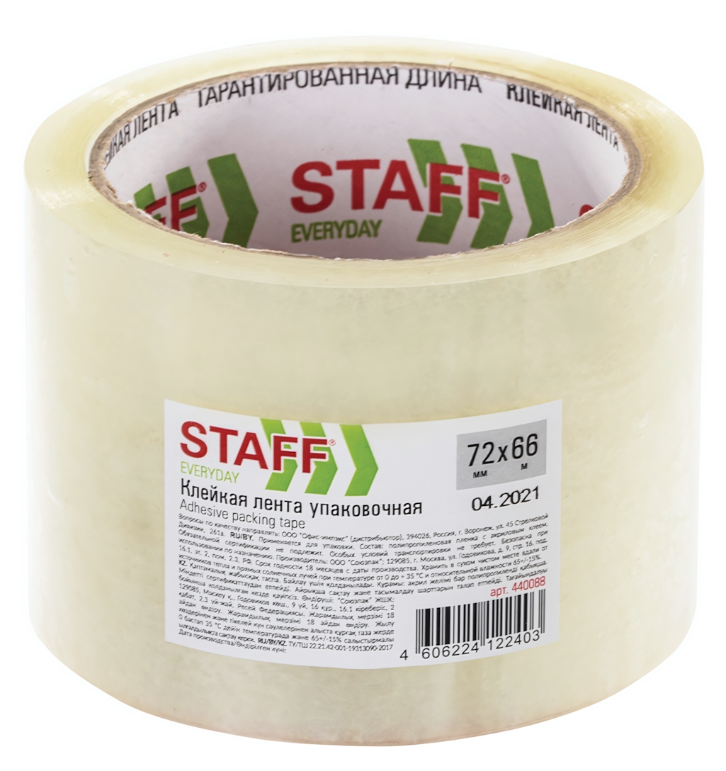 Клейкая лента STAFF имеет размеры 72 мм в ширину и 66 м в длину, что обеспечивает длительное использование без необходимости частой замены. Она изготовлена из качественного пластика, что гарантирует ее долговечность и надежность. Выбирая клейкую ленту STAFF, вы получаете высококачественный продукт, который поможет вам организовать упаковку быстро и эффективно.