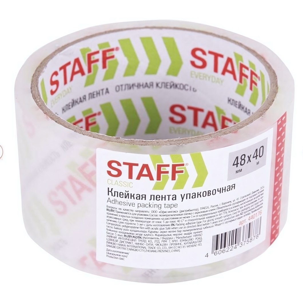 Клейкая лента STAFF CLASSIC обладает толщиной 40 мкм, что позволяет ей выдерживать воздействие низких температур и влажности. Она способна удерживать вес коробки до 15-17 кг, что делает её отличным выбором для упаковки тяжелых предметов. Прозрачный цвет ленты позволяет видеть содержимое упаковки, что особенно удобно при использовании в торговле.