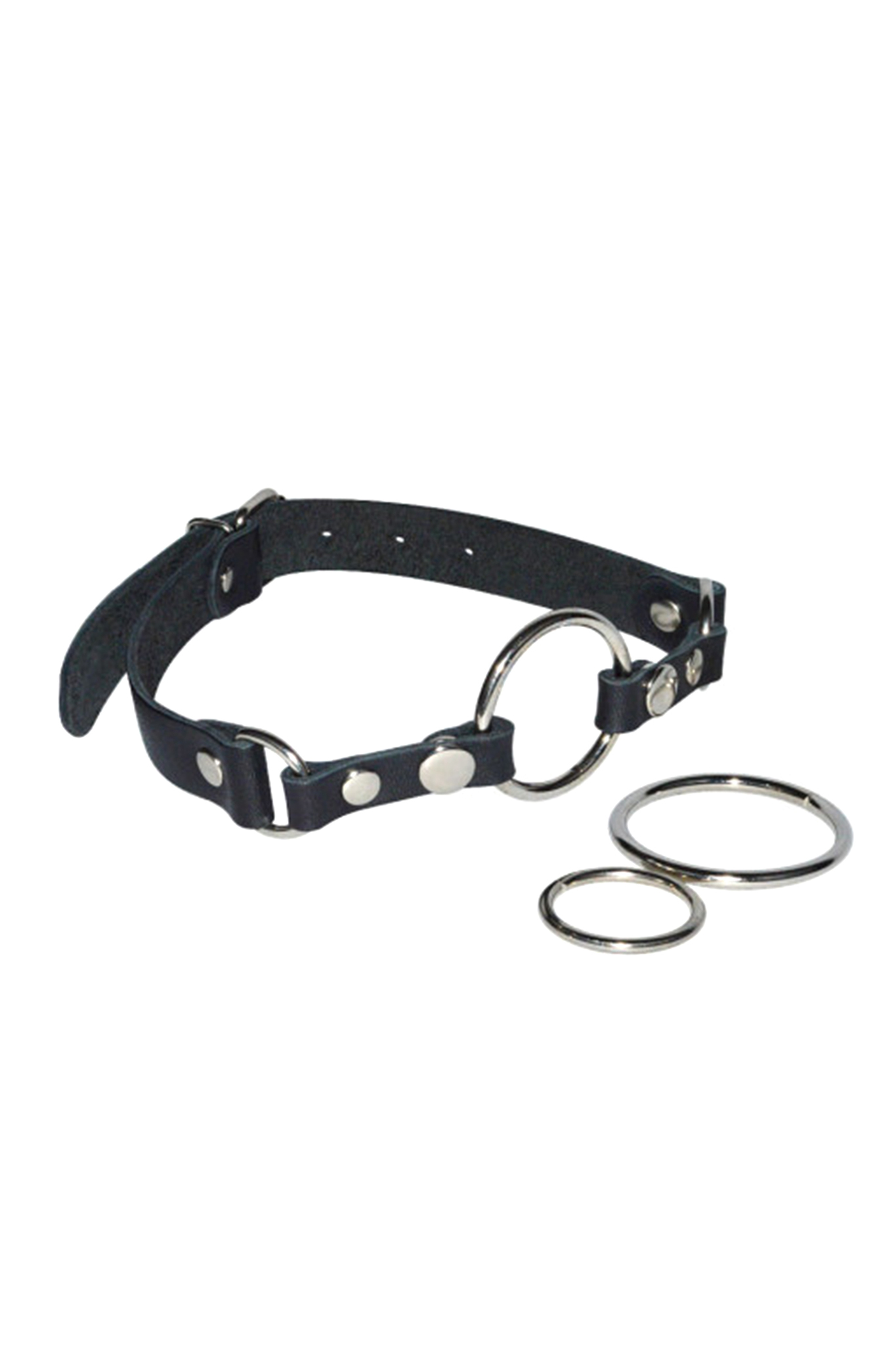Этот кляп-рамка из натуральной кожи обеспечивает комфорт и безопасность благодаря регулируемому ремешку и качественной фурнитуре. Идеально подходит для тех, кто ценит практичность и разнообразие в использовании, так как оснащён сменными металлическими кольцами разного диаметра — 38 мм, 44 мм, 59 мм — что позволяет менять ощущения в зависимости от настроения или опыта.