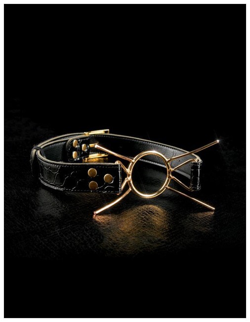 Металлический кляп-расширитель с позолотой сочетает изысканный дизайн и продуманную эргономику. Идеально подходит для ценителей премиальных аксессуаров в стиле BDSM.
