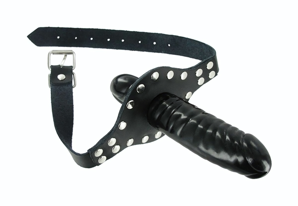 Кляп фиксируется на голове с помощью кожаных ремешков, что позволяет легко регулировать размер и обеспечивать надежную фиксацию. С одной стороны кляп вставляется в рот, а с другой стороны находится упругий дилдо длиной 12 см и диаметром 4 см. Длина самого кляпа составляет 6,3 см, а его диаметр — 3,8 см. Этот товар идеально подходит для тех, кто хочет добавить элементы BDSM в свою интимную жизнь.