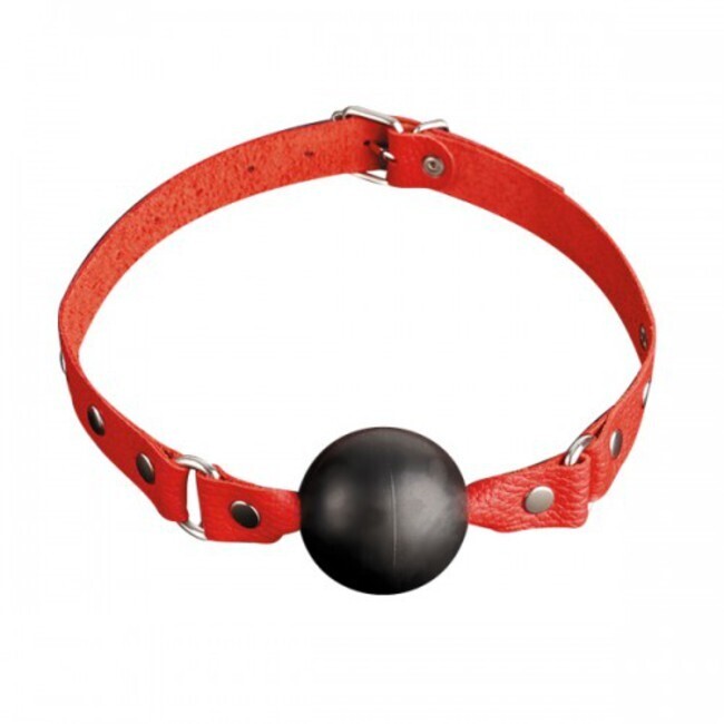 Кляп с регулируемым ремнем из натуральной кожи, диаметр 4,4 см, ширина 2 см, красный с черным