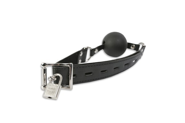 Кляп с шариком и замком, эко-кожа/металл, регулируемый ремень 60 см, диаметр 4,5 см, черный