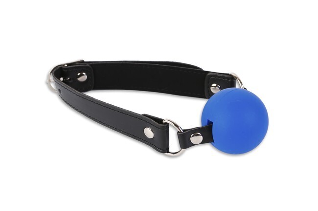 Кляп с шариком регулируемый, эко-кожа/металл, черный с синим, 56 см, шар 4.8 см