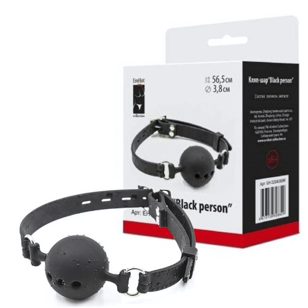 Кляп силиконовый дышащий «Black person», шарик 3,7 см, регулируемый ремень 52 см, черный