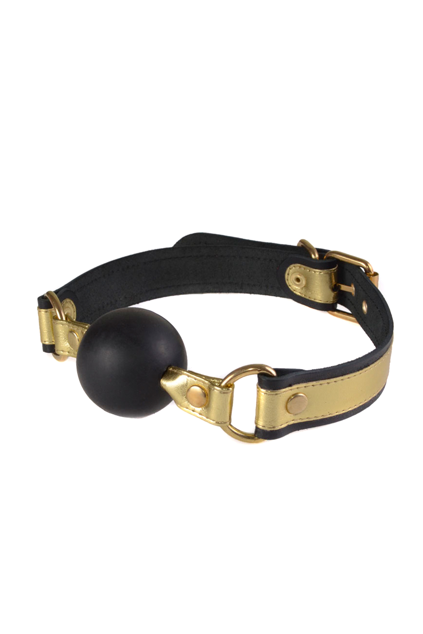Кляп Sitabella 'Gold Series', диаметр 4.5см, кожа черная/золотистая