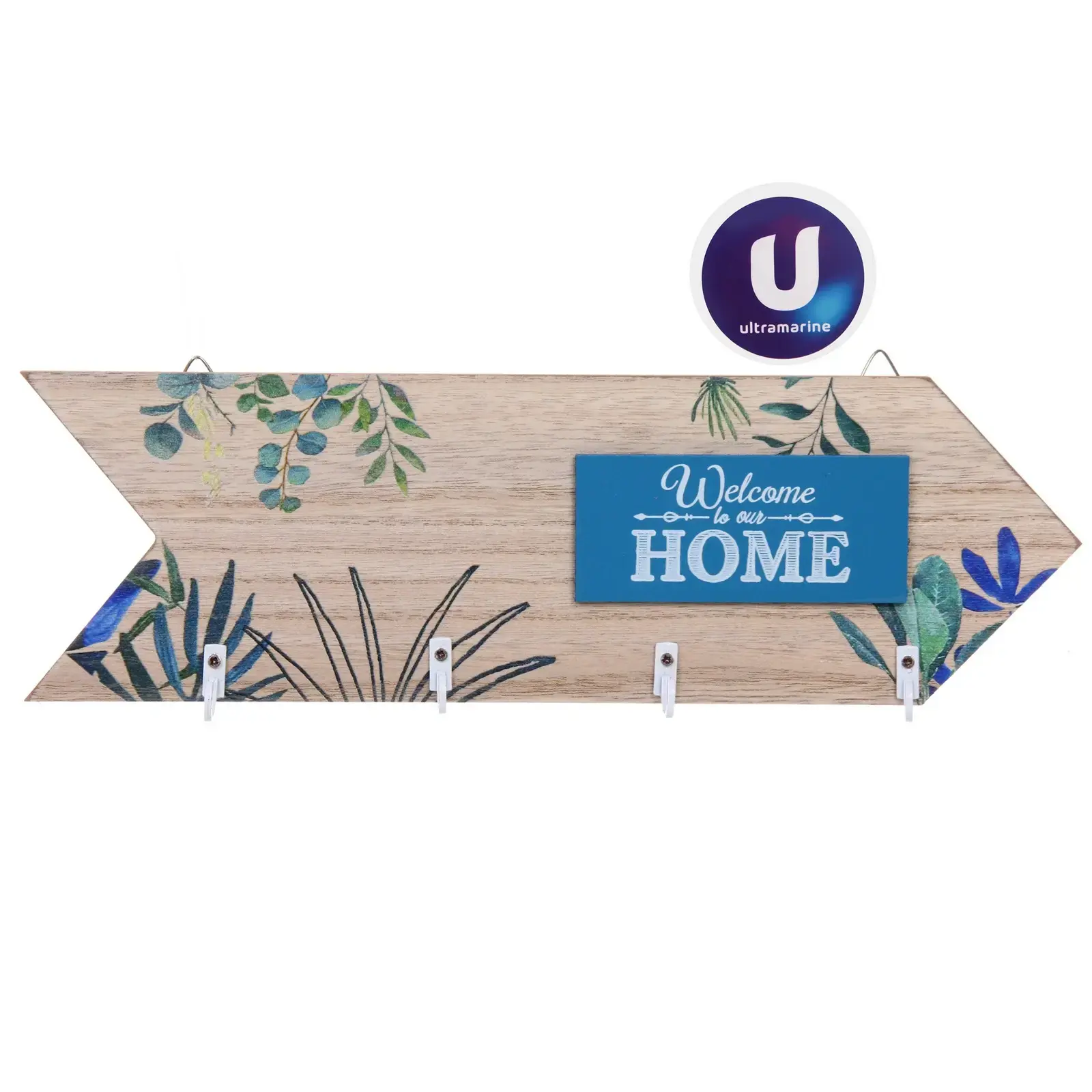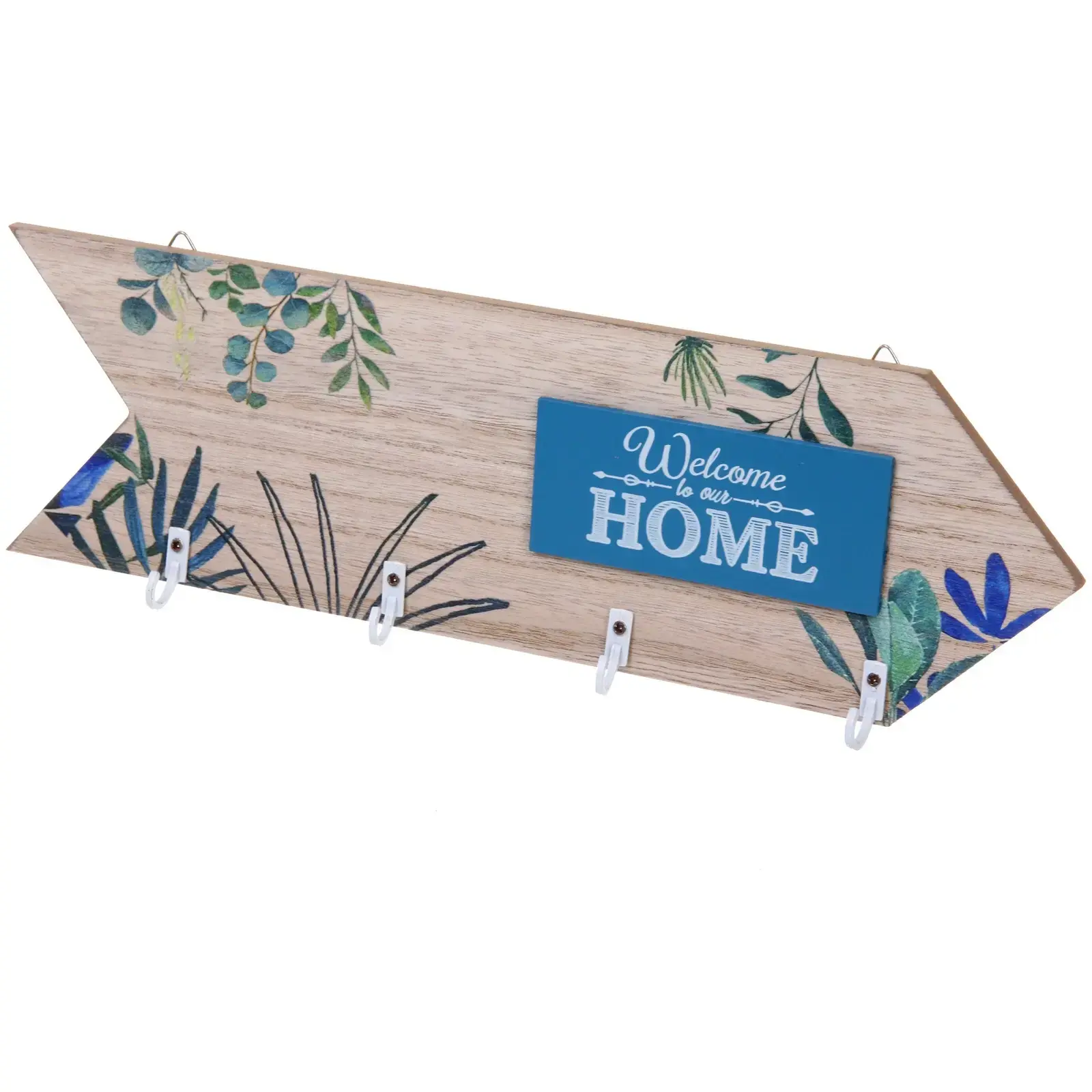 - Эстетичный дизайн с растительным мотивом и надписью «Welcome to our HOME» придает интерьеру теплую атмосферу.