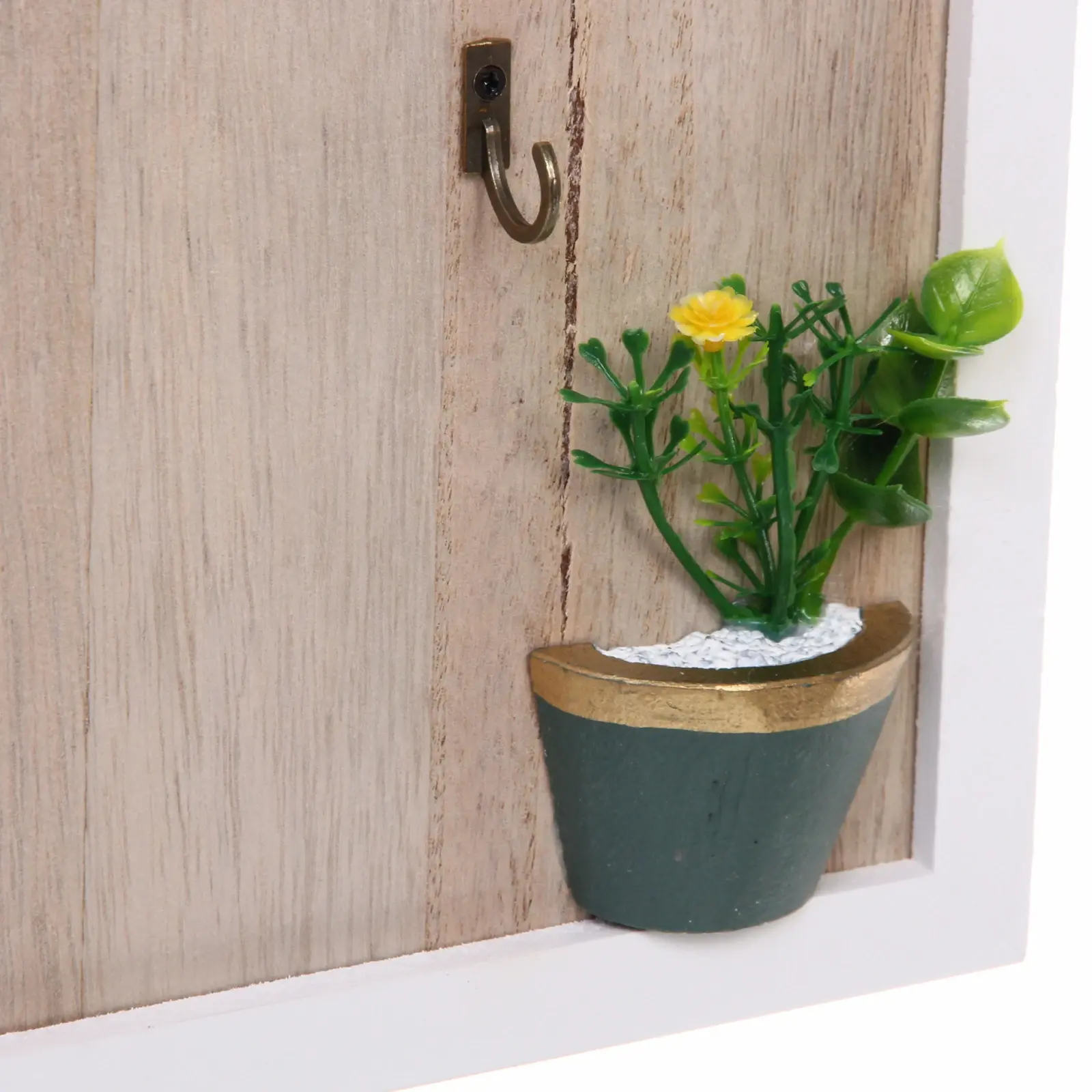 Преимущества этой ключницы — её прочность, универсальный дизайн и гармоничное сочетание материалов. Светлая деревянная основа и металлические крючки обеспечивают долговечность, а декоративный элемент — эстетический фокус.