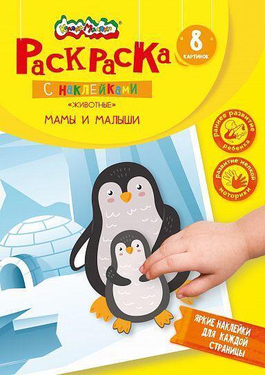 Книжка с наклейками 'Мамы и малыши', 8 стр, от 1 года, формат А4
