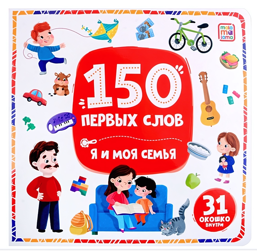 Книжка-игра с окошками «150 первых слов», 31 интерактивное окошко, тема семьи, картон 1-3 года