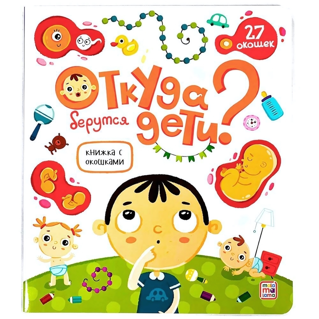 Книжка с окошками "Откуда берутся дети?", Malamalama, 27 секретов, развивающая, картонная, для малышей