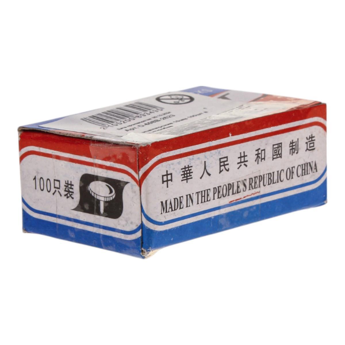 Компактная картонная коробка содержит ровно 100 штук, что гарантирует длительное использование без частой дозаправки. Металлический материал обеспечивает долговечность и устойчивость к деформации.